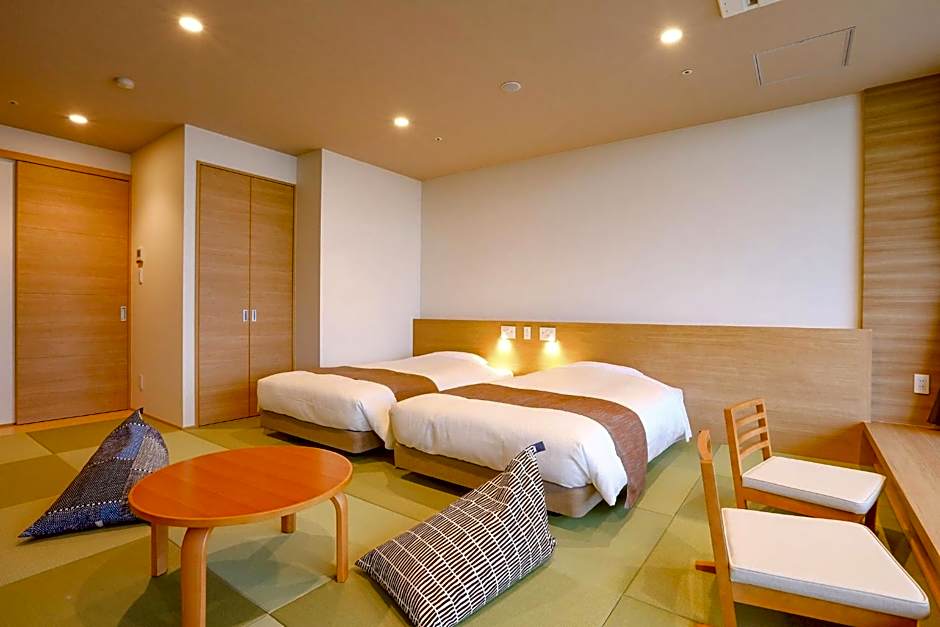 The spacious air-conditioned twin room features a flat-screen TV, tatami, an electric kettle and heating. The unit has 2 beds and 3 futons.