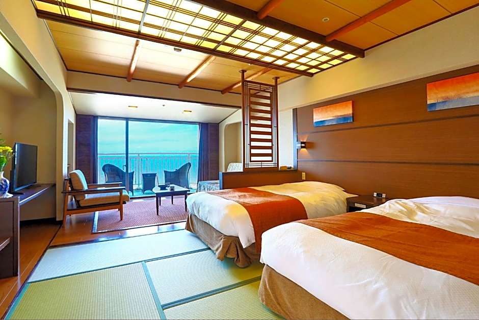 Offering free toiletries, this family room includes a private bathroom with a shower, a hairdryer and slippers. The spacious air-conditioned family room offers a flat-screen TV, tatami, an electric kettle, heating as well as sea views. The unit has 2 beds and 2 futons.